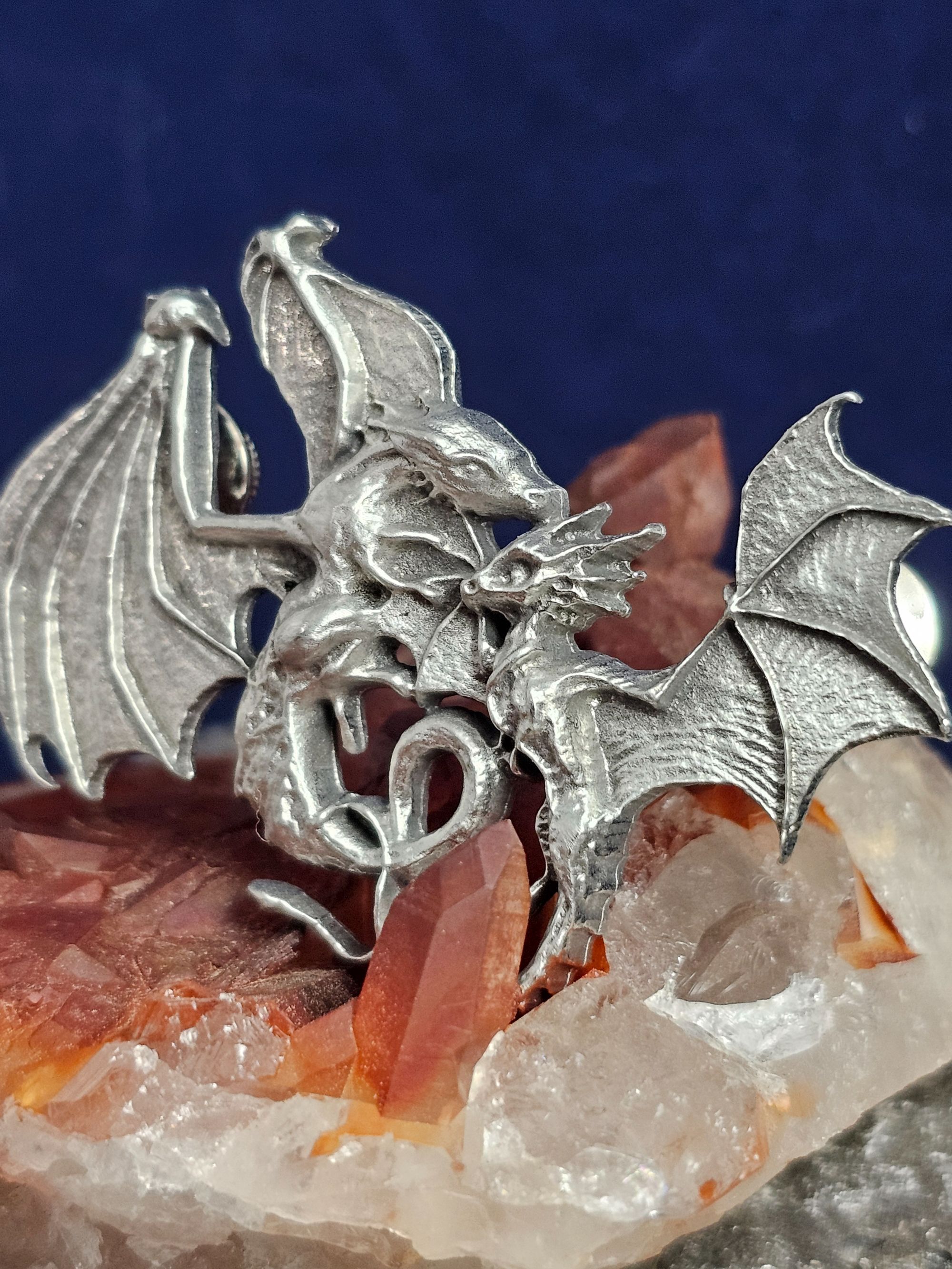 Have you ever dreamed of being a dragon rider? This hand cast pewter dragon pin captures that moment that the youngling dragon learns to fly! Celebrate this moment.