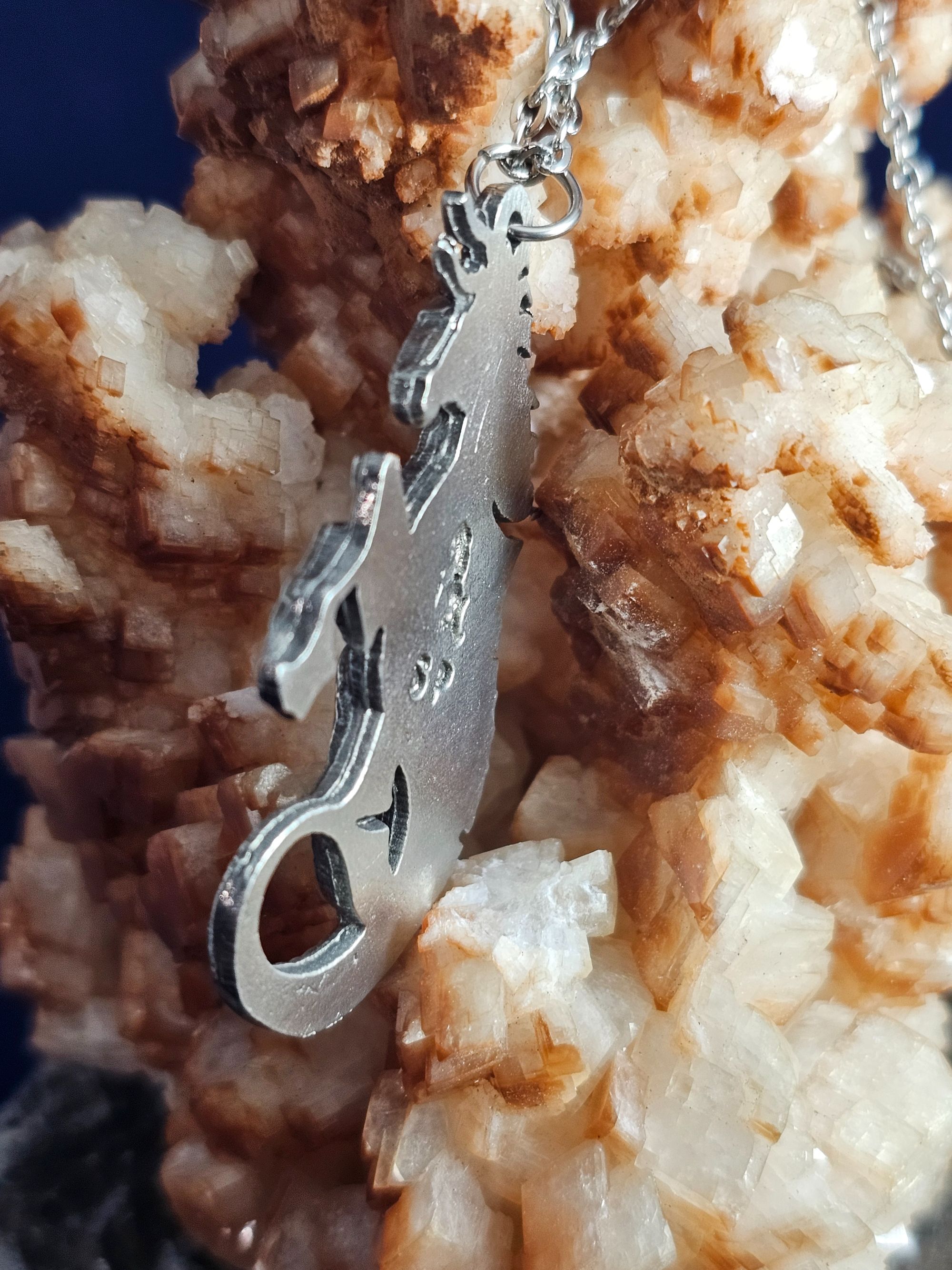 This incredibly detailed hand-cast pewter pendant measures --- and is complete with and 18 in stainless steel chain.